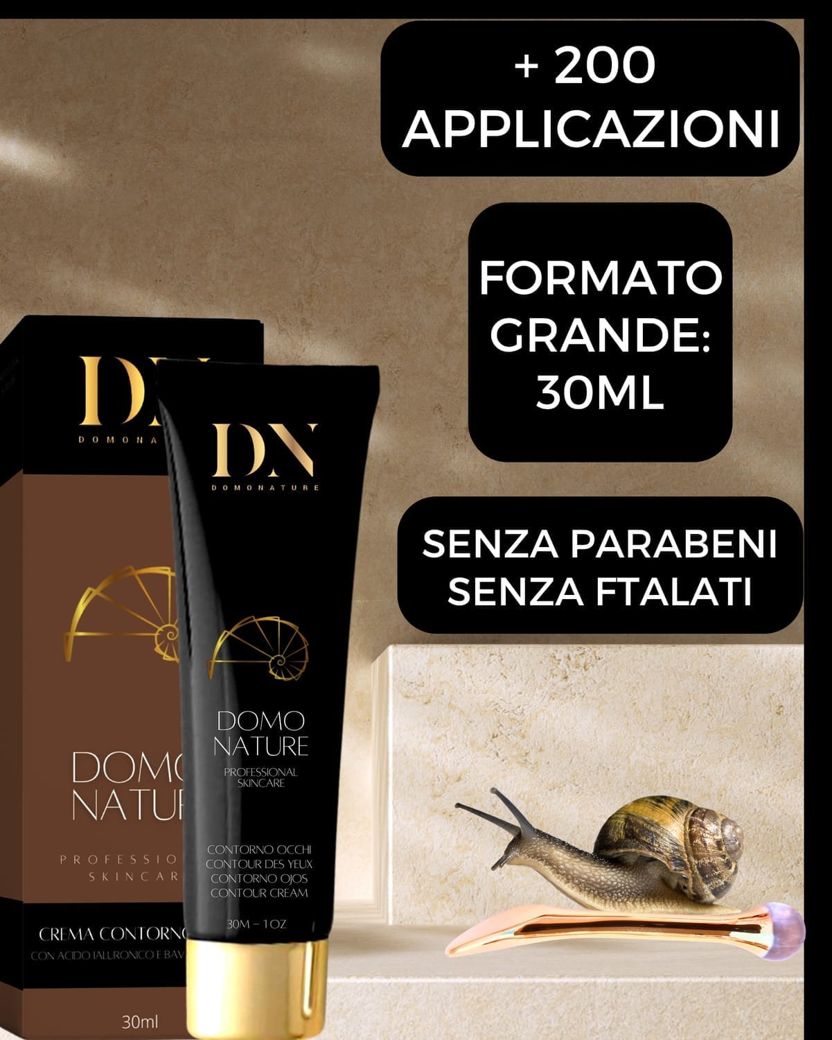 Il siero viso Domonature contiene Bava di lumaca Helix Muller Aspersa, nella sua forma più nobile.
