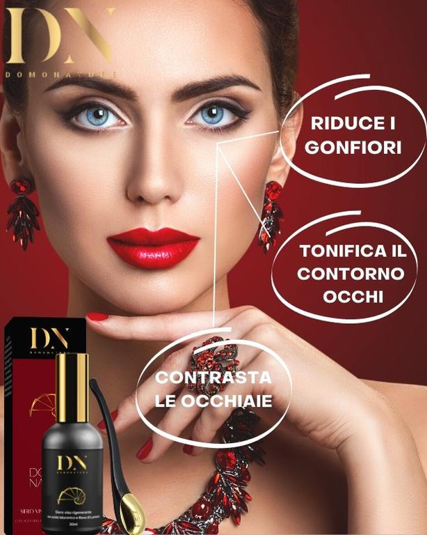 Un uso costante del siero Domonature aumenta rapidamente l'effetto tensore sul contorno occhi, regalando al viso un'espressione più lucente e radiosa.